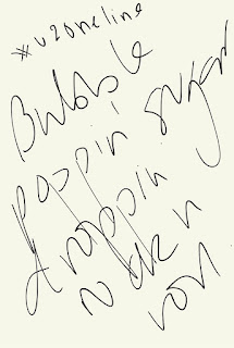 A collaboration of U2 one line offerings from Twitter under the hashtag #U2oneline after Mart (g_gormo) suggested "it's quite cathartic to write your favourite line from a #U2 song on a piece of paper and just take it in...try it".